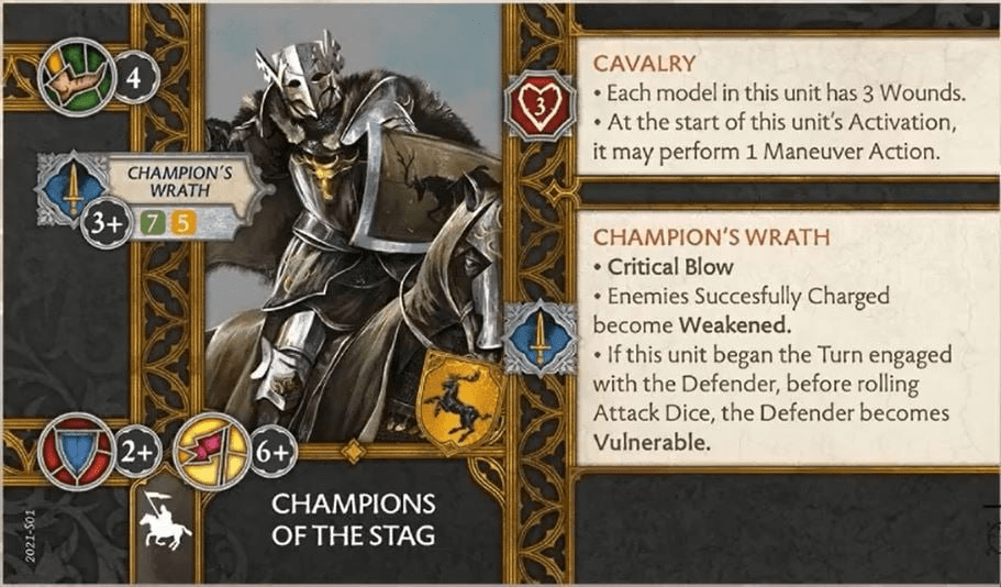These guys suffered from one big issue for their point cost: not much striking power once engaged. Now, with the additionof a free Vulnerable token, it can make an attack much more devastating for their opponent. Plus, they finally synergize much better with Stannis, at least the Rightful Heir version and his tokens shenaningans…