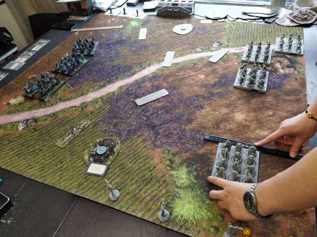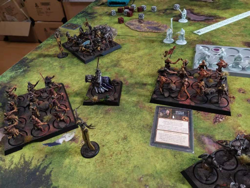 On the left, the Kingsmen went after the Reapers, and managed to do a fantastic 9 wounds attack. One Wendamyr and a Greyjoy card later, and the Ironmakers lost some men to reinforce the Reaper unit, nullifying their damages.