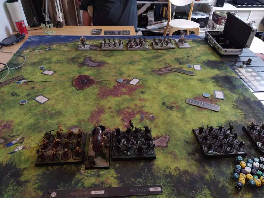 Deployment went smoothly, I placed the elephant in between the Golden Company and the Reavers, with the Trappers and Bowmen aiming for the objective on the right. Wun Wun was the problematic element in his list, placing it in front of my Victarion. Eric placed Abel the Bard in my Bowmen, which didn’t really have any influence on the game sadly.