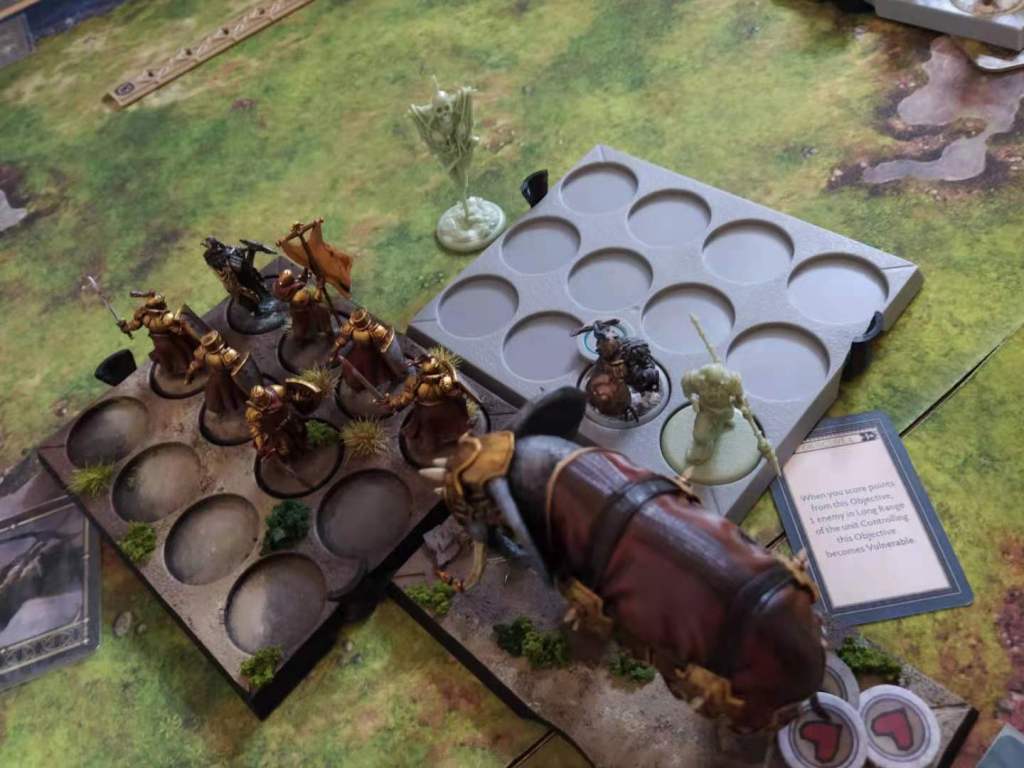 The Golden Company Swordsmen also play really well with Victarion: he doesn’t really care about the zones, so taking the Letters mid-game and replace them with an attack is not a bad thing, and he really enjoys being in a unit with Sundering. They are more resilient to Panic than usual Greyjoy units, which is always a nice bonus (as I actually failed quite a lot of Panics, so the -1 wound really saved them on one occasion).