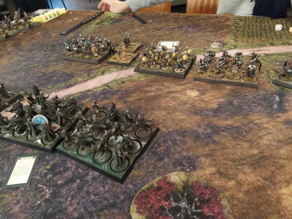 With this leeway, I planted one unit of Drowned men on the central objective, supported by Dagmer and his reavers on one side, while Bowmen and the other Drowned men unit would control the east objectives.