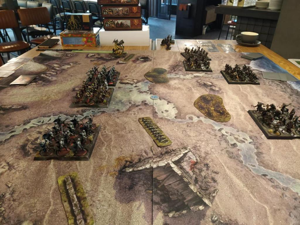 As such, the MVP of the match turned out to be the “Bribery” card Brent placed on my Victarion unit, which led me to charge instead with the Nute one, which led to them taking the most brutal Crossbowmen attack I had ever seen (9 wounds!), which led me to charge with unready Ironmakers (thanks “Intrigue & Subterfuge” on Erik), which led me to have wounds everywhere with not enough healing power in my cards to get back.